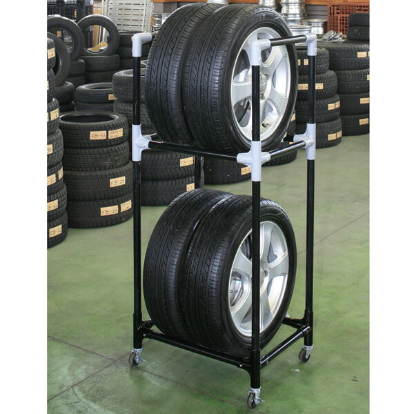 はめ込み式のタイヤラックです。ご家庭でも組立てカンタン☆重いタイヤもラクラク移動のキャスター付です♪※ィ客様組立となっております。●商品サイズ(約):幅約59×奥行き約46×高さ約133cm●商品重量:約5.3kg●適合サイズ:普通自動車用タイヤ(タイヤ幅235m/m以下、外径500〜675m/m)●耐荷重:約120kg●材質:塩ビ被覆鋼管、ABS樹脂、ポリカーボネート、スチール、ゴム、ポリアセタール